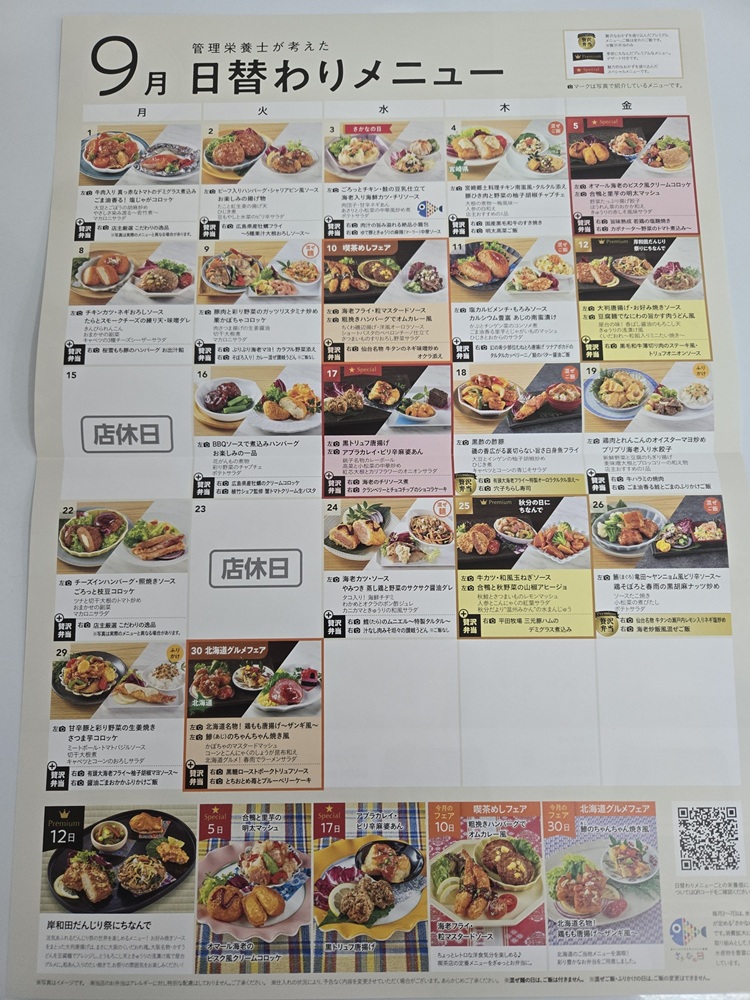 今月より日替わりメニュー価格改定により